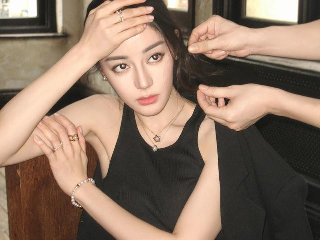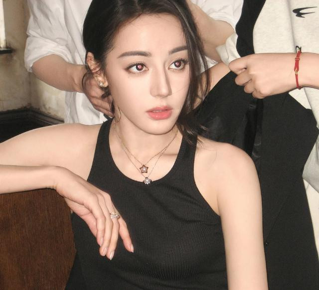 迪丽热巴穿黑色背心秀肌肉, 奈何肌肉小不显, 倒是红色美瞳好抢镜